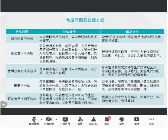 由我司财务辅导老师程华双就高企认定财务得分技巧、研发费用归集实操、辅助账编制、财务常见问题等进行了精彩分享。